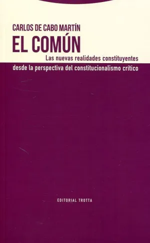 Se trata en este libro de la aplicación y desarrollo de los supuestos que en el anterior del autor, Pensamiento crítico, constitucionalismo crítico (Trotta, 2014), se contenían en su propuesta de un «constitucionalismo crítico». Se analizan y categorizan así las nuevas respuestas que se están dando a las también nuevas formas de dominación capitalista. Este intento de captar el «movimiento de lo real» se expresa teóricamente a través del concepto de «Común», cuya realidad se manifiesta de tres formas: el Común objetivo (en las fuerzas productivas), el Común formado por un elemento objetivo (los bienes comunes) y otro subjetivo (la lucha por esos bienes comunes) y el Común predominantemente subjetivo (lo que se designa como prácticas del Común).